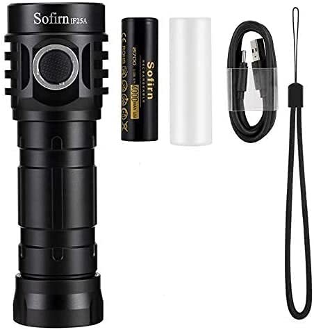 SOFIRN IF25A là một cây đèn pin với độ sáng cao trong một thiết kế nhỏ gọn. Đèn có độ sáng tối đa 3.800 lumen, tầm chiếu xa 420m sử dụng bóng LED Luminus SST-20 (Nhiệt màu 6000K) , với hệ thống bảo vệ nhiệt thông minh (ATR). Đèn có hai chế độ sáng là: Chế độ 1 với 5 nấc sáng; Chế độ 2 với ramping, ẩn ECO, Turbo, Nhấp Nháy, Đèn Hiệu và SOS. Đèn có ánh sáng đều, mịn, rất thích hợp dã ngoại dùng hàng ngày trong gia đình, du lịch, đi rừng và các hoạt động về đêm khác.