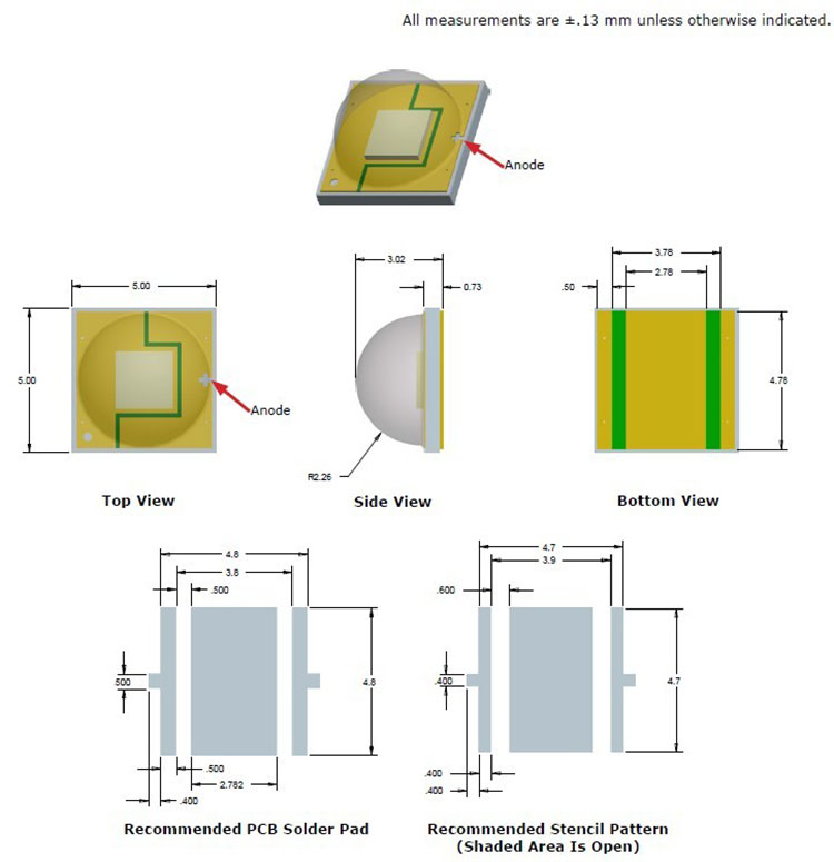- Quang thông: MAX 1100 lumen (@ 3000mA 25 ℃)